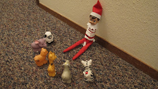 I will admit, I had a hard time coming up with ideas. There are a ton of Elf on the Shelf compilation articles out there, including my own. But a lot of the ideas involve other items, which we didn't always have. I wanted to have ideas that for the most part involved things I had lying around the house. I'm not saying our Elf was the most adventurous but Gideon enjoyed him and that's all that matters.